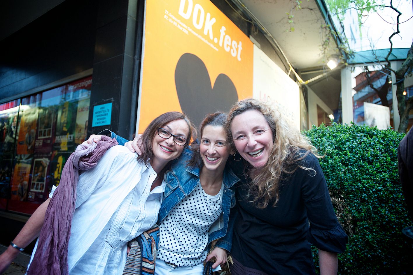 Eröffnung DOK.fest 2012, Innenhof City Kinos: Anne Thomé (DOK.fest), Teresa Zeckau (DOK.fest) und Eva Weinmann (DOK.fest) / Copyright DOK.fest - Rainer Möller