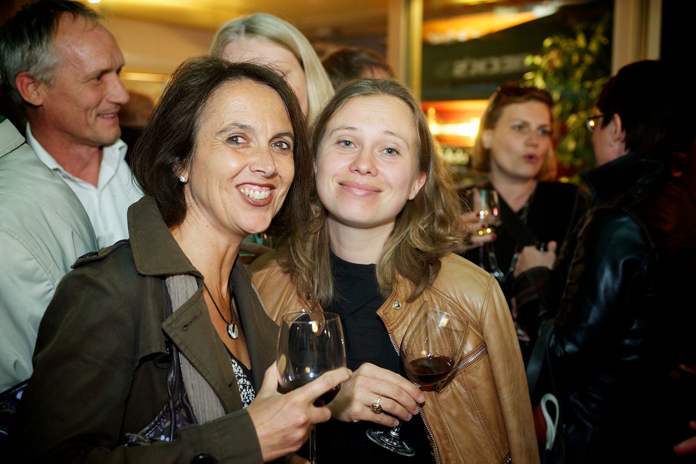 Eröffnung DOK.fest 2012, Innenhof City Kinos, v.l.n.r.: Elena Subira i Roca (Docs Barcelona / Mitglied Internationale Jury 2012), Rada Sesic (IDFA Amsterdam / Mitglied Internationale Jury 2012) / Copyright DOK.fest - Rainer Möller