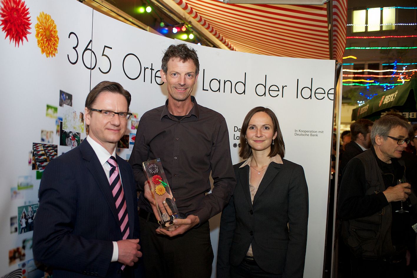 Eröffnung DOK.fest 2012, Innenhof City Kinos, Petra Felber (BR), Daniel Sponsel (Festivalleitung DOK.fest) und Claas Danielsen (DOK Leipzig) / Copyright DOK.fest - Rainer Möller