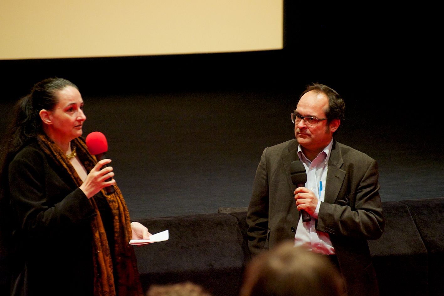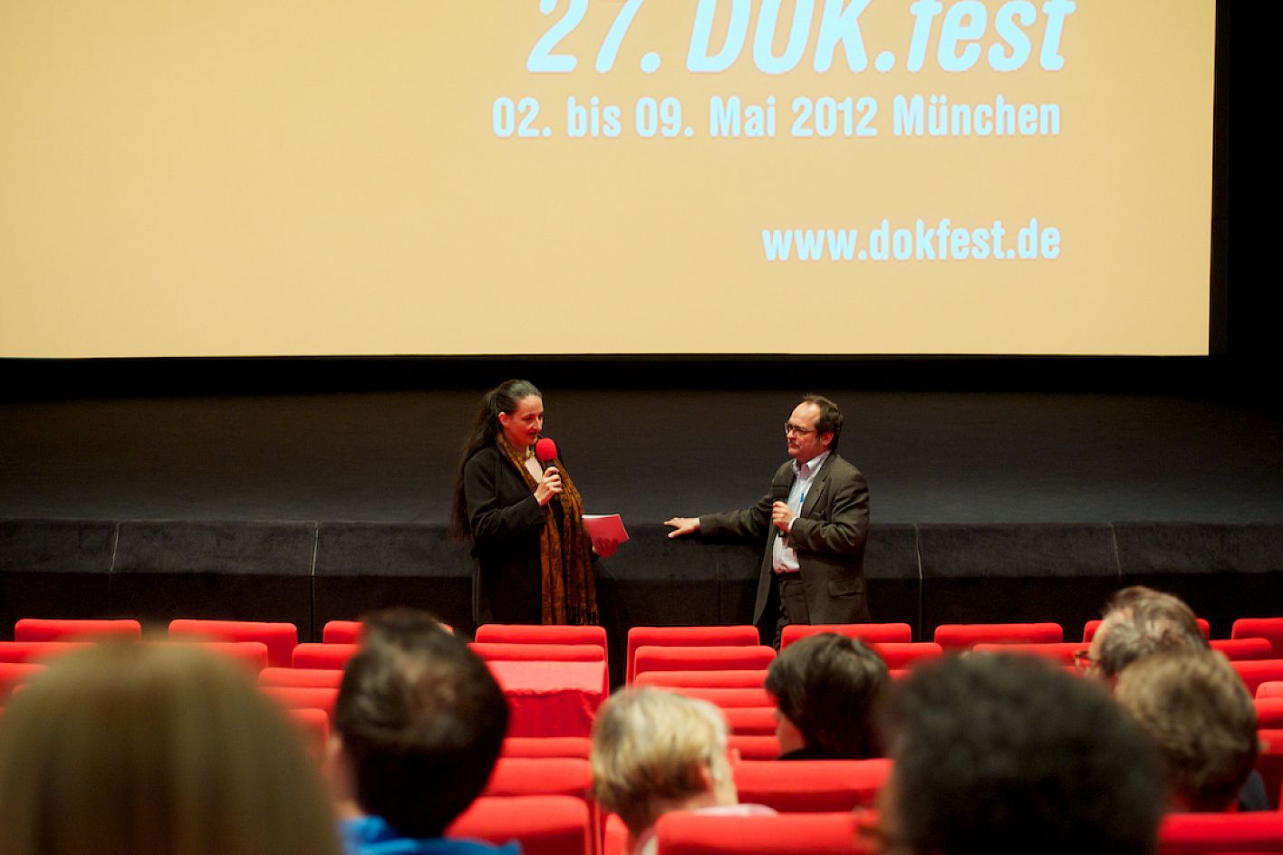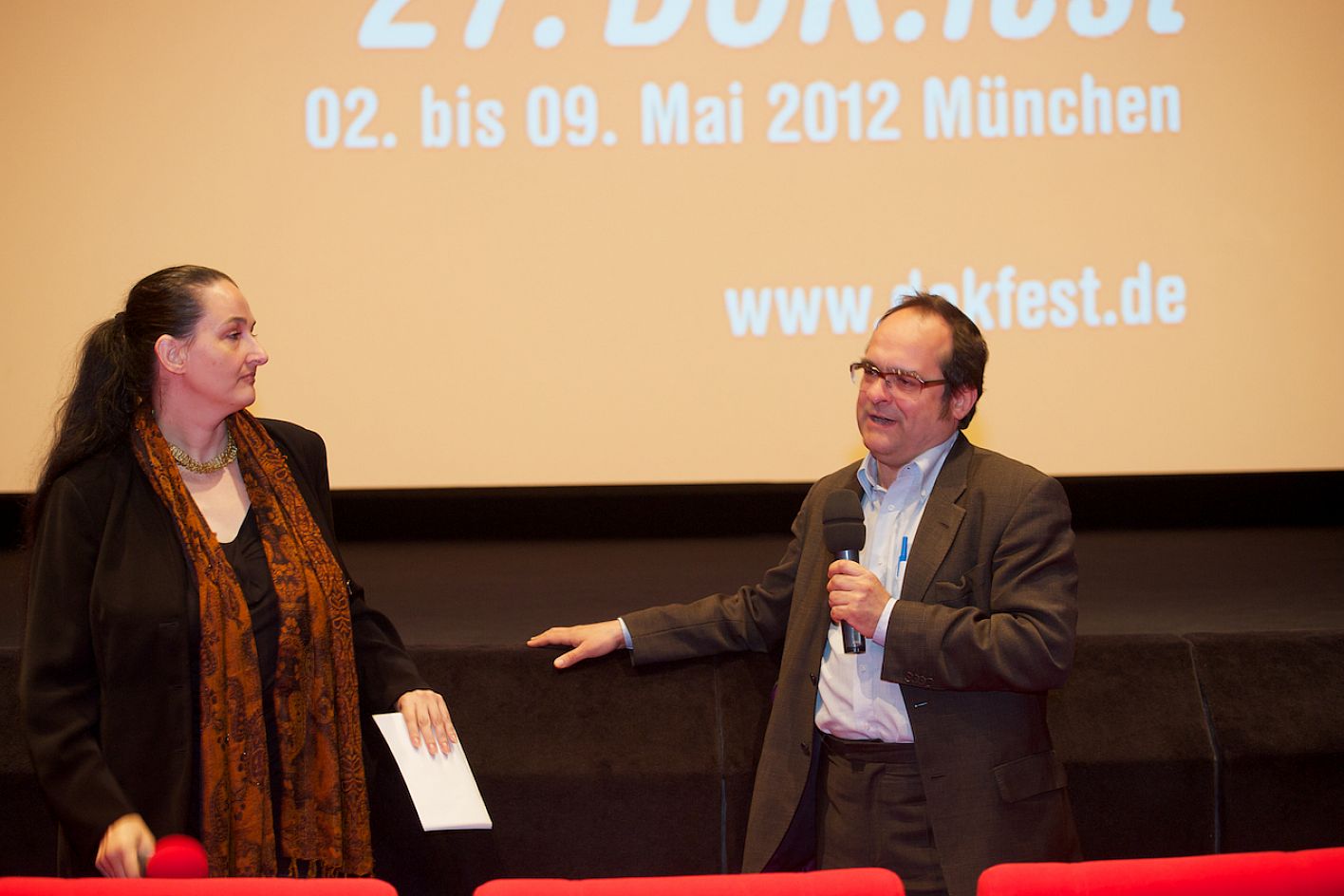 • Regisseur Werner Herzog (re.) im Gespräch mit Moderatorin Silvia Bauer (li.) im ARRI Kino / Copyright DOK.fest - Rainer Möller
