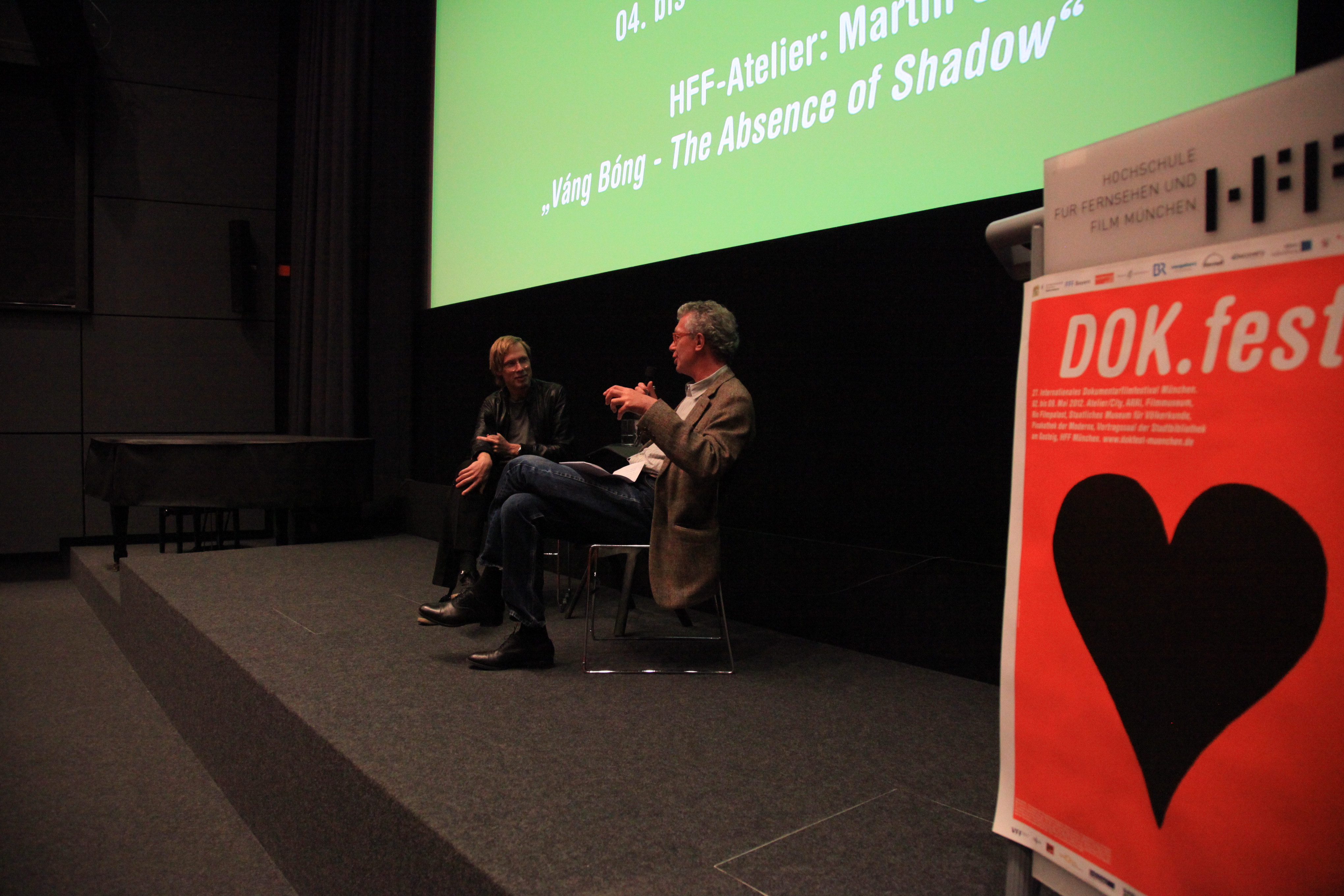v.l.n.r.: Martin Otter (Regisseur von VÁNG BÓNG - THE ABSENCE OF SHADOW), Prof. Heiner Stadler (HFF München) / Copyright DOK.fest - Phuong Lavan