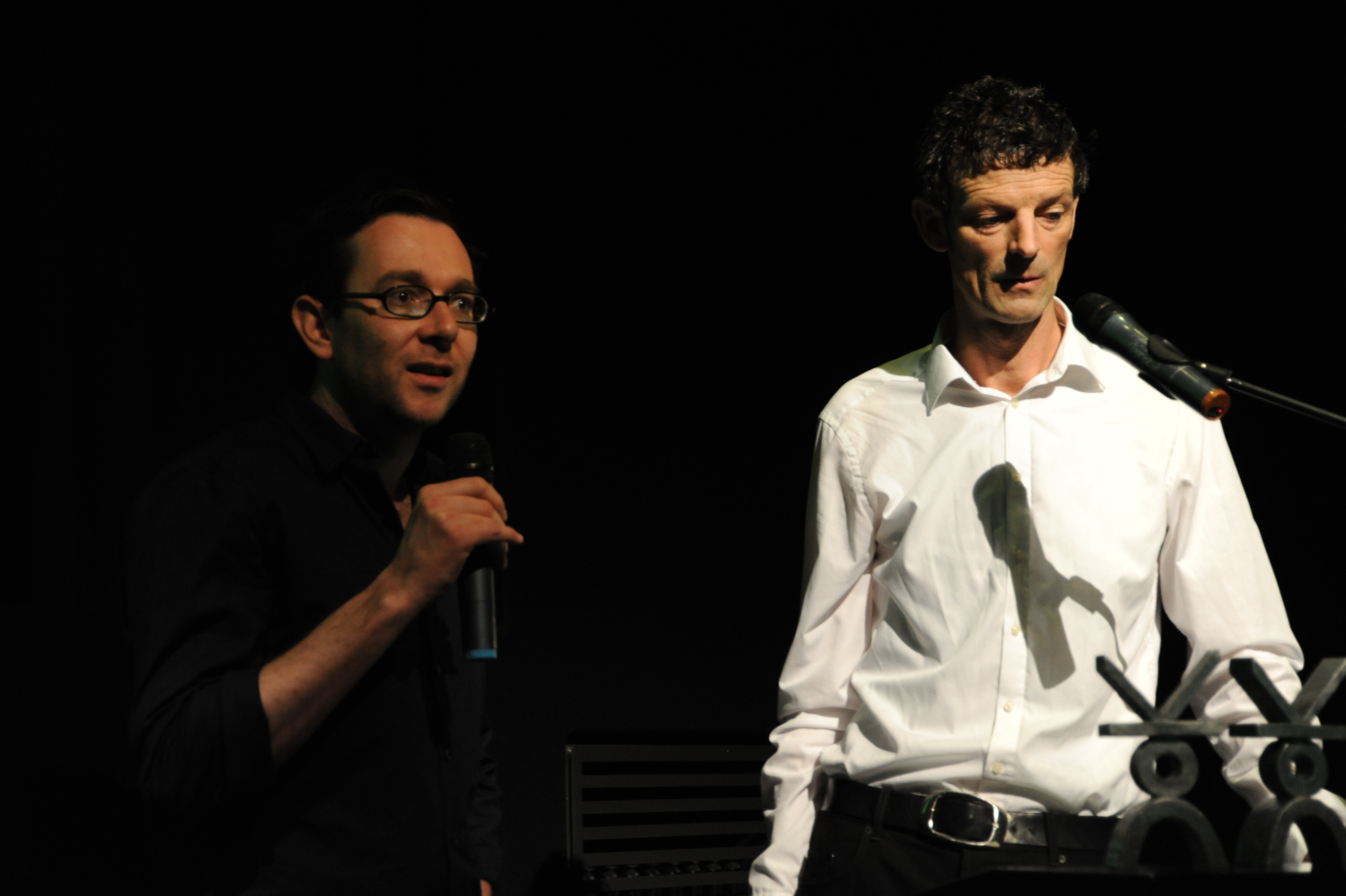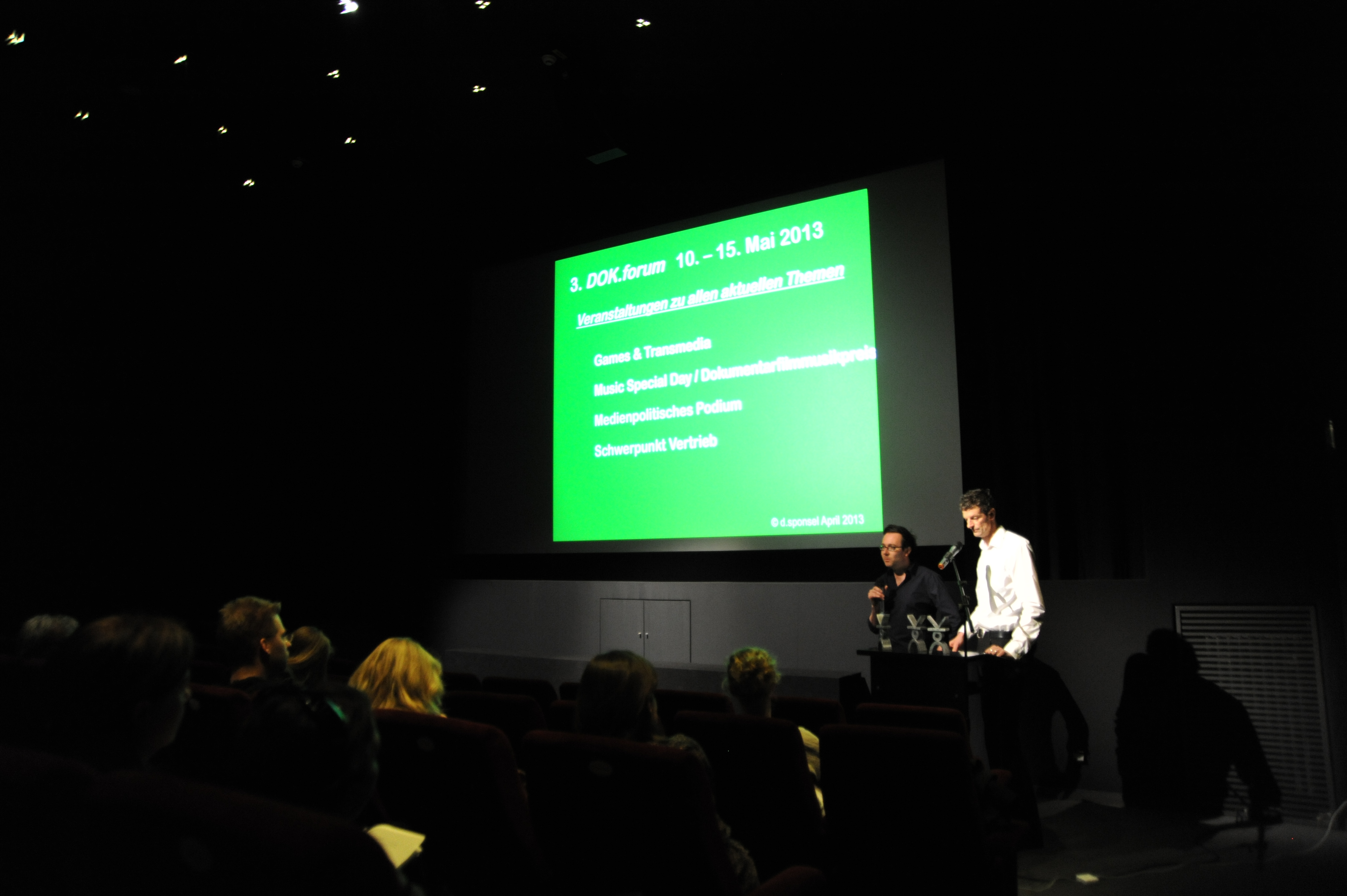 Sebastian Sorg (DOK.forum, li.) mit Daniel Sponsel (Festivalleiter, re.) bei der DOK.fest Pressekonferenz im Filmmuseum am 25. April 2013 / Copyright DOK.fest - Maren Willkomm