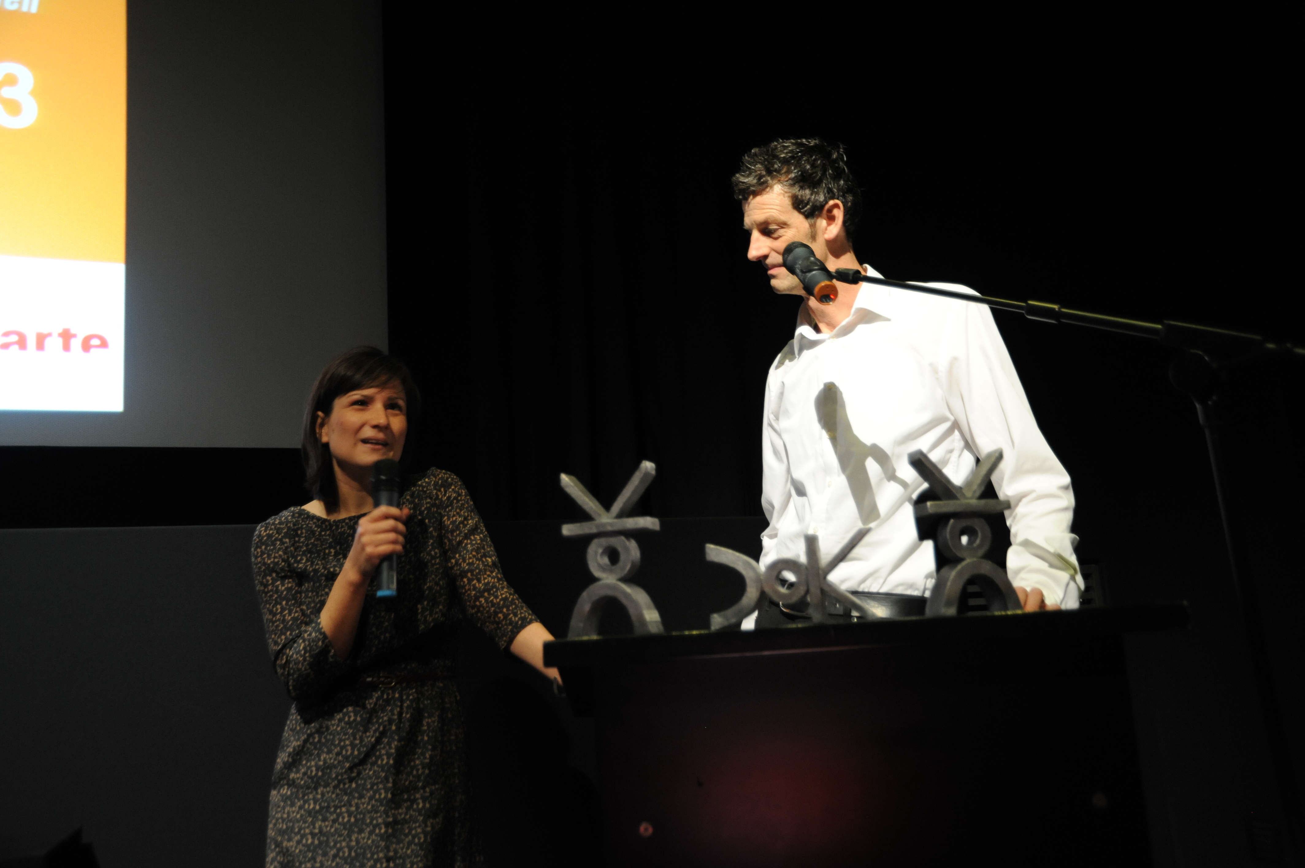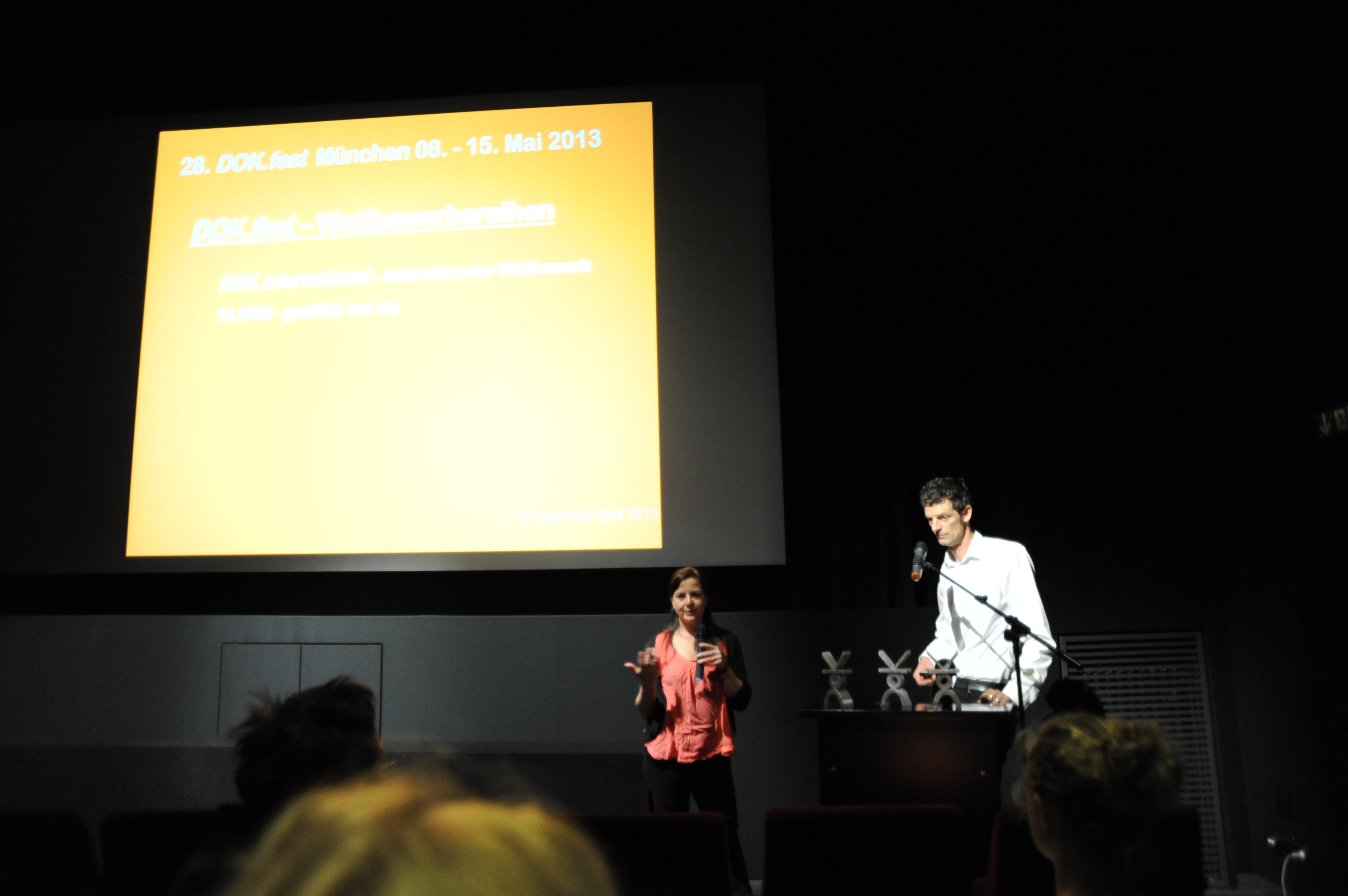 Dunja Bialas (DOK.international, li.) mit Daniel Sponsel (Festivalleiter, re.) bei der DOK.fest Pressekonferenz im Filmmuseum am 25. April 2013 / Copyright DOK.fest - Maren Willkomm