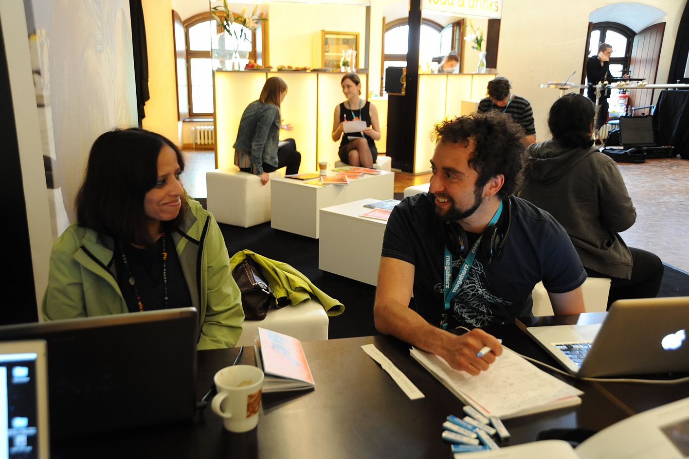 Zwei Regisseure im Austausch : Nishta Jain (Gulabi Gang) und Chico Pereiro (Pablos Winter) / Copyright DOK.fest - Maren Willkomm