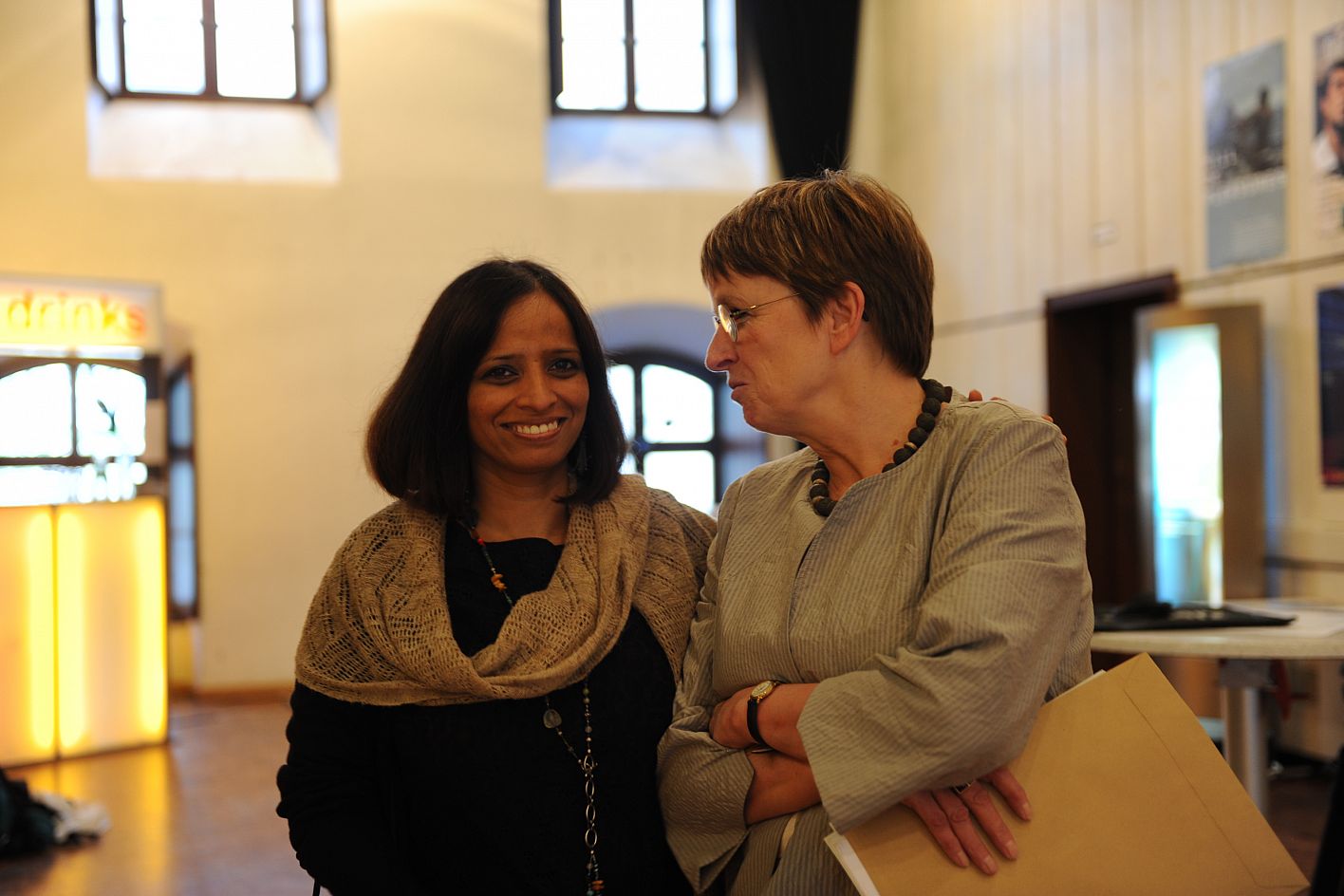 Regisseurin Nishtha Jain (GULABI GANG, li.) und Ulla Wessler (DOK.fest, re.) / Copyright DOK.fest - Maren Willkomm