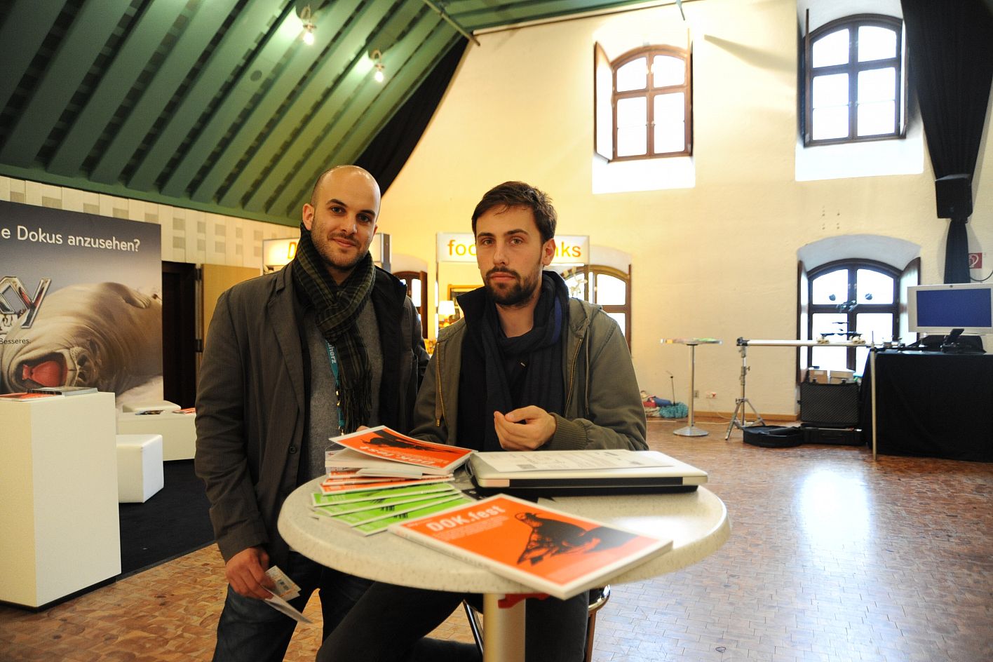 Regisseur Damien Ounouri (FIDAI, li.) und Gerard-Jan Claes (RAIN, re.) / Copyright DOK.fest - Maren Willkomm