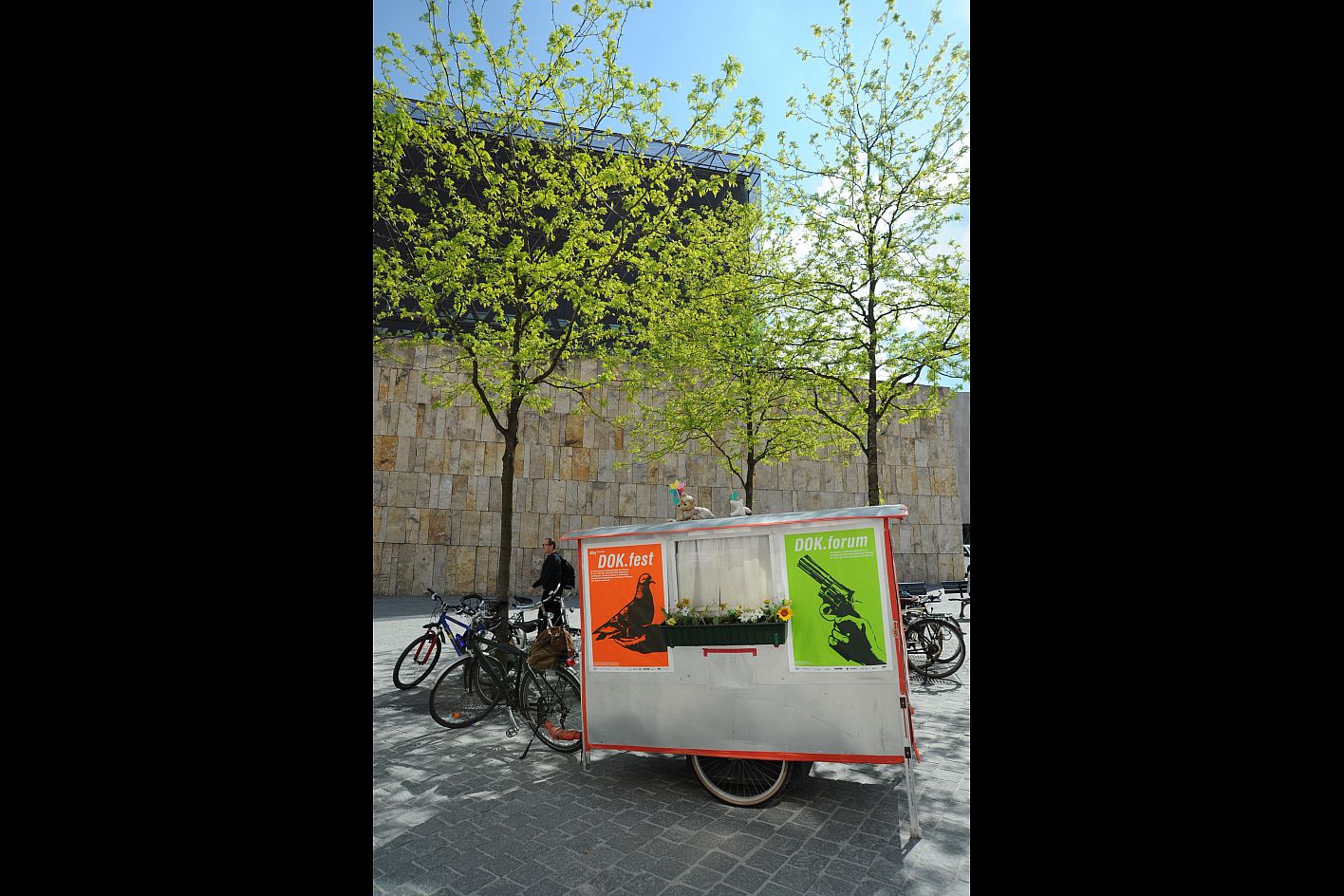 • Der mobile DOK.fest- Anhänger am St.-Jakobs Platz / Copyright DOK.fest - Andrea Naica-Loebell
