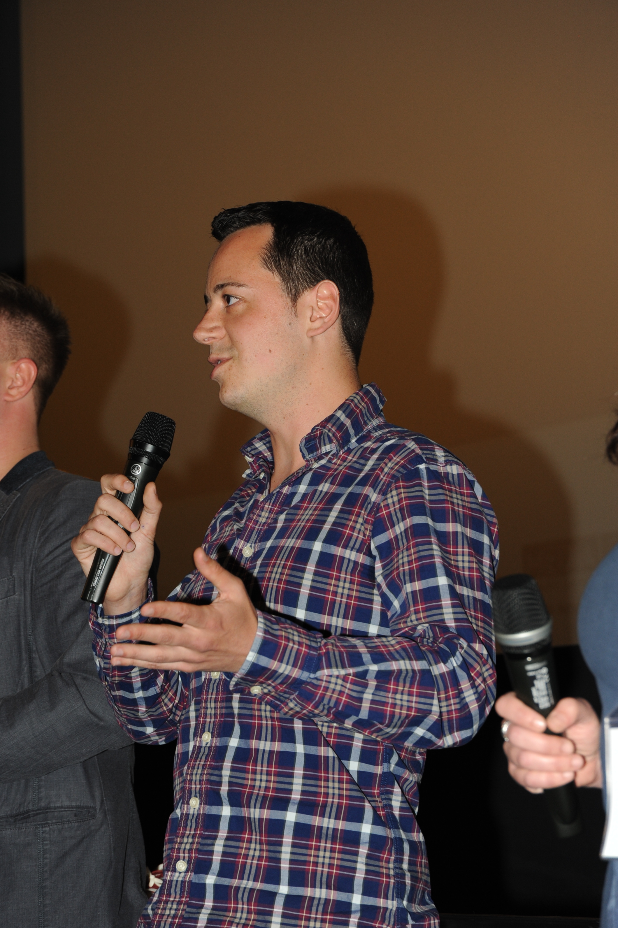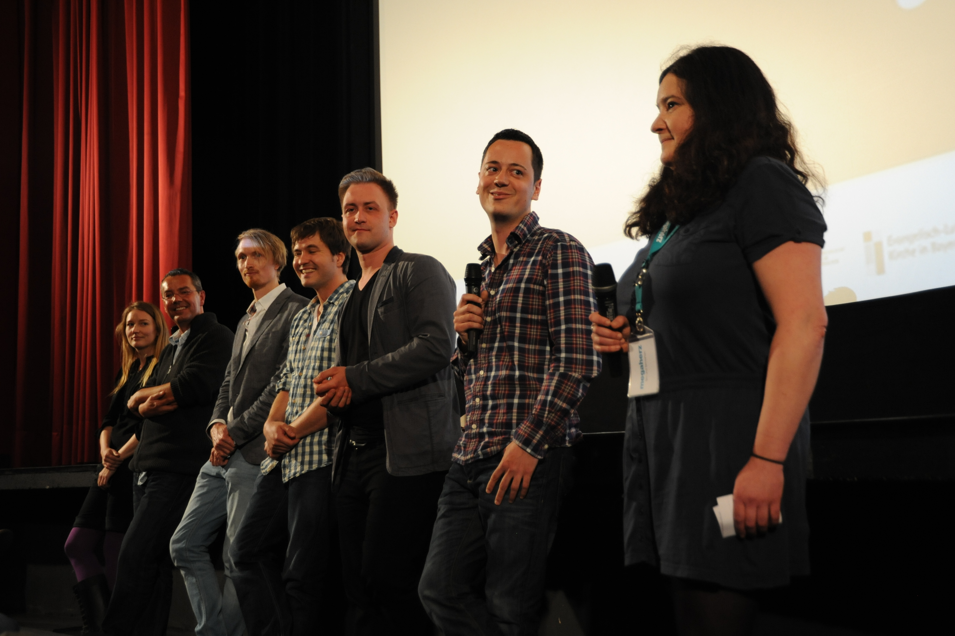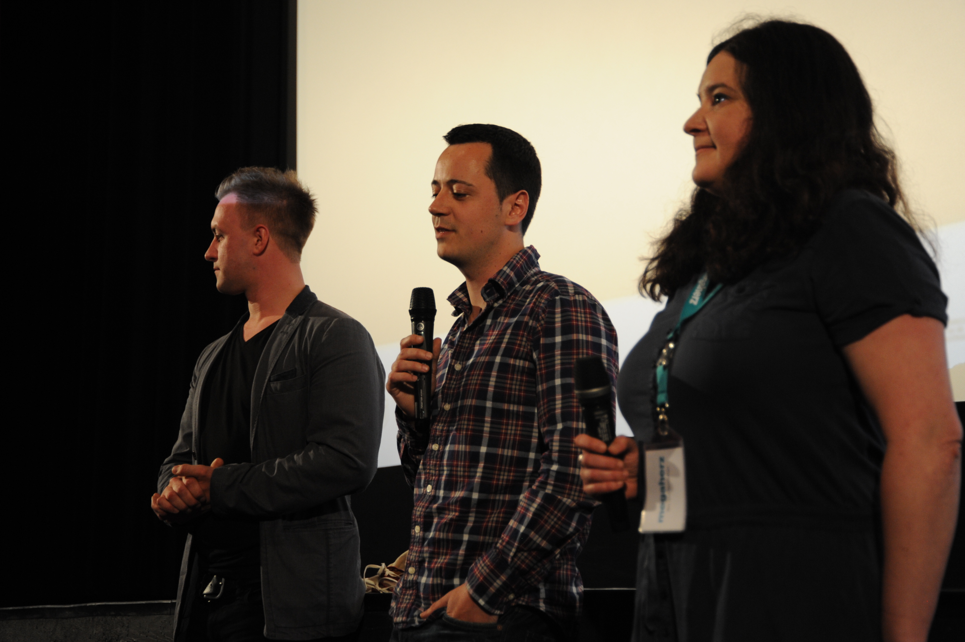 Das Filmteam, Guerilla Koch Felix Metzger, Regisseur Jonas Gernstl und Moderatorin Anja Klauck stehen Rede und Antwort / Copyright DOK.fest - Maren Willkomm