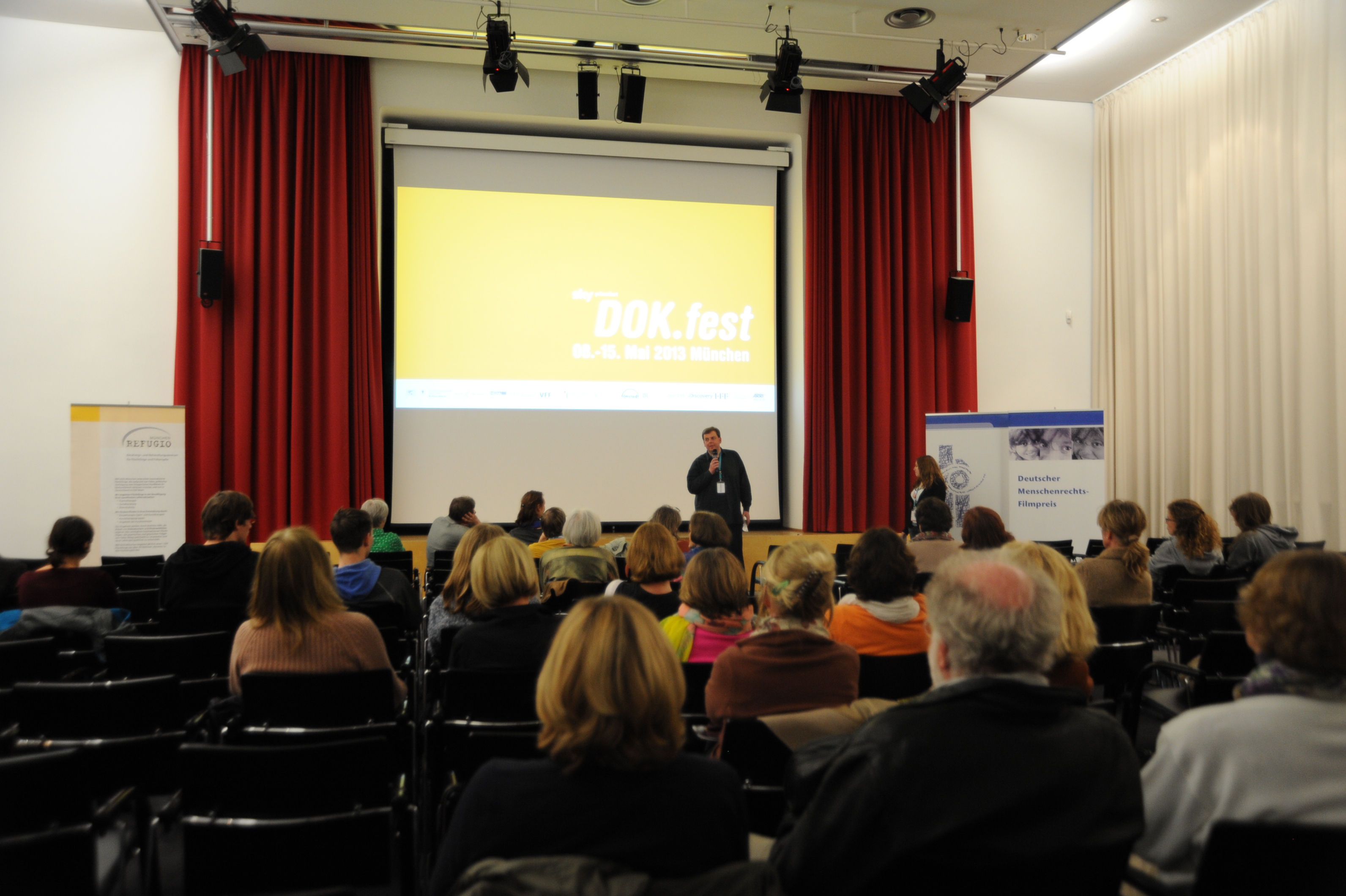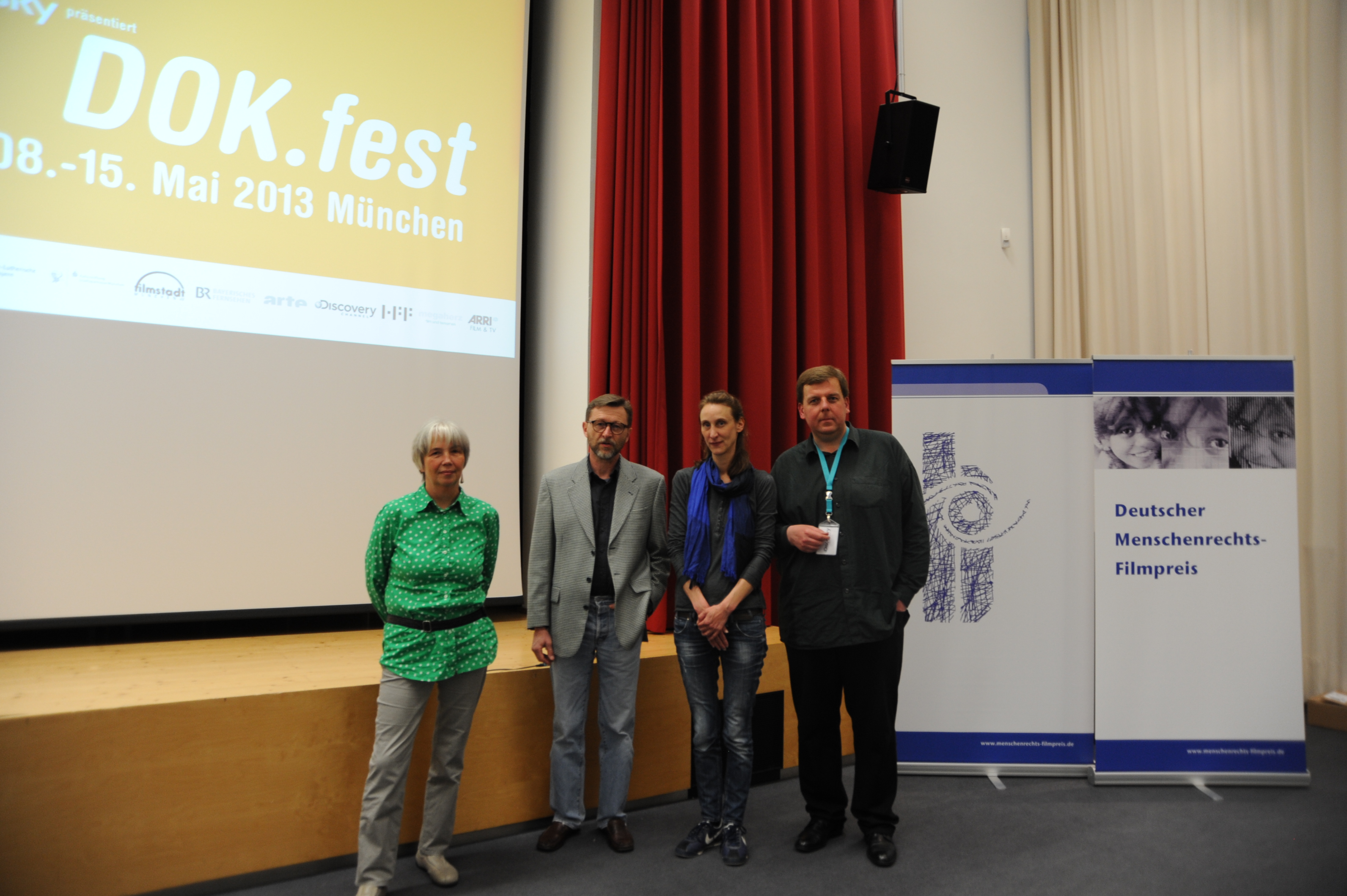 v.l.n.r.: Anni Kammerlander (REFUGIO München), Richard Bischoff (Psychotherapeut und Trauma-Experte), Katya Mader (3sat) und Marko Junghänel (Deutscher Menschenrechts-Filmpreis) / Copyright DOK.fest - Maren Willkomm