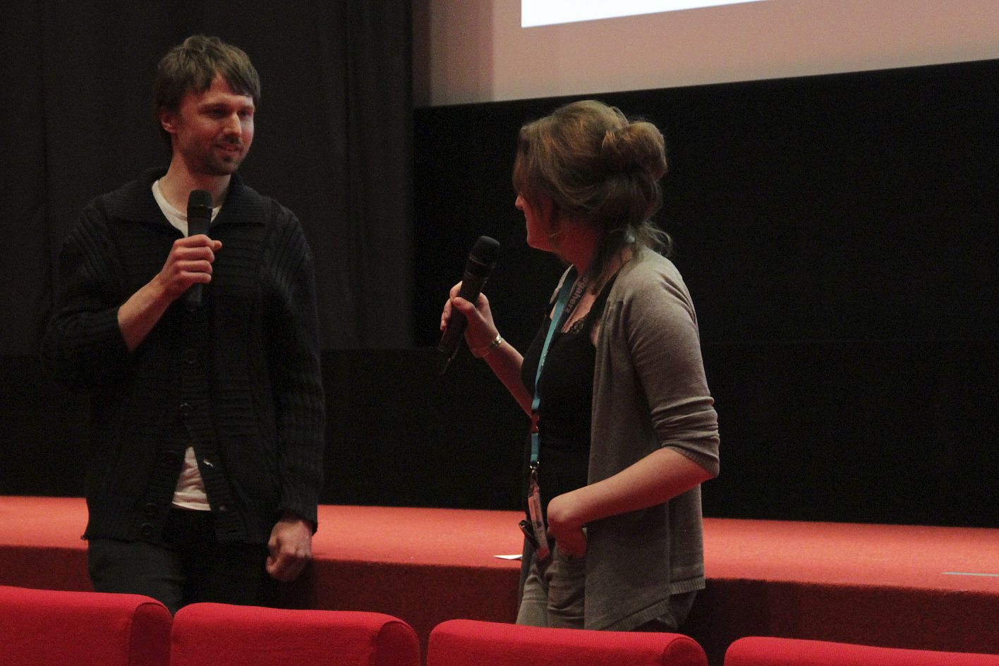 • Regisseur Stefan Eisenburger (SILVESTER MIT WILLI UND LOTTI) im Gespräch mit Elisabeth Hamberger. DOK.forum filmschool.screening KHM Köln / Copyright DOK.fest - Ute Bolmer