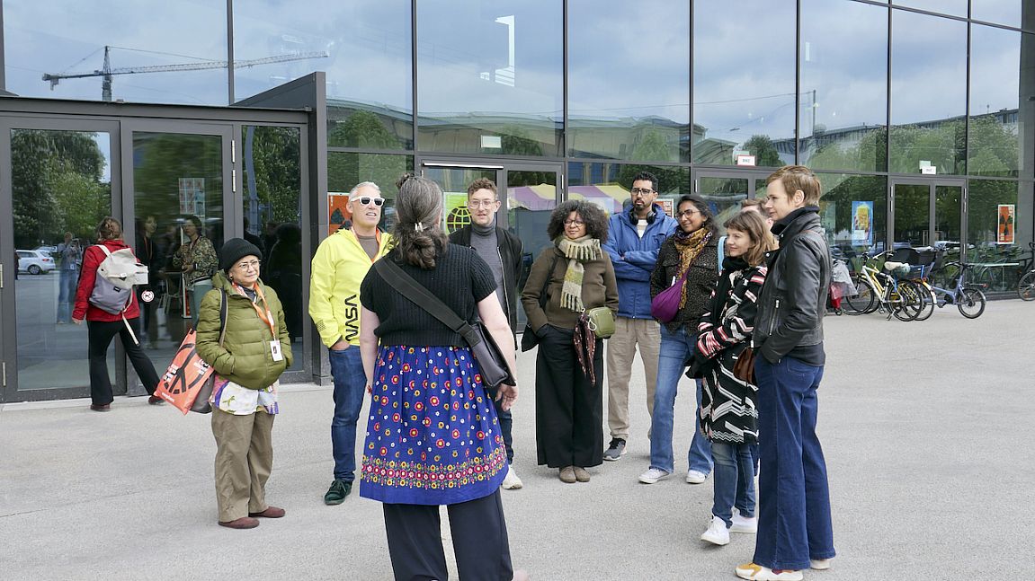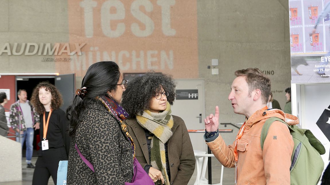 Kommen Sie auf einen Kaffee und ein Gespräch mit Kolleg*innen ins Foyer der Hochschule für Fernsehen und Film München (HFF).