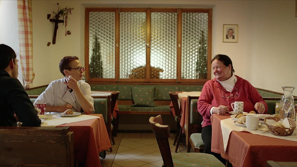 „Wen Gott lieb hat, den lässt er fallen in dieses Land“ – die Aufschrift auf der Holztafel zu Beginn des Films ist Programm: Berchtesgaden zeigt sich von seiner schönsten Seite. Imposant erhebt sich der Watzmann vor dem Café Waldluft, einem Hotel mit Geschichte, in die Höhe. Nur sind heute kaum noch Touristen zu Gast, sondern Asylbewerber aus Syrien, Afghanistan und Sierra Leone. Um die jungen Männer kümmert sich „Mama“ Flora, eine gestandene Wirtin, pragmatisch wie gottergeben. Einheimische, Touristen und Flüchtlinge kommen gleichermaßen zu Wort. Heimat und Fremde, Freude und Verzweiflung liegen in Matthias Koßmehls preisgekröntem Film eng nebeneinander. CAFÉ WALDLUFT beschönigt nichts, zeigt aber, wie Integration funktionieren kann. Ludwig Sporrer
