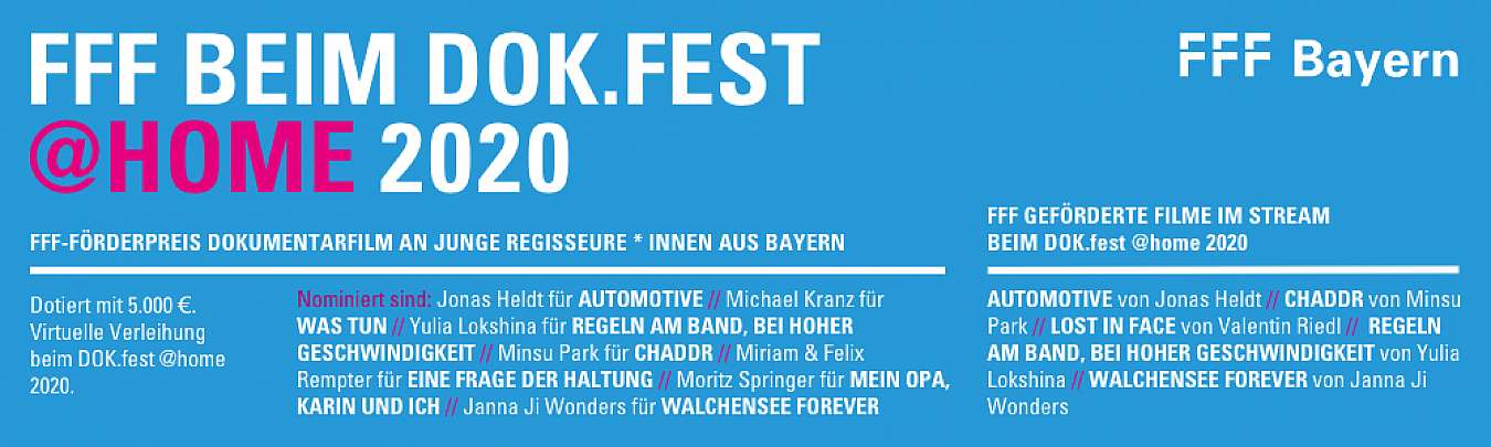 FFF Talent Award Documentary Film (endowed with 5,000 Euros, sponsored by FFF Bayern)