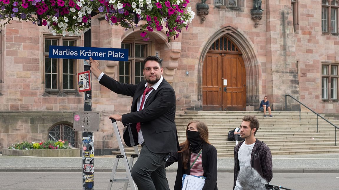 „Ich will nie als Frauenrechtlerin bezeichnet werden – ich bin Feministin!” Marlies Krämer kämpft seit 30 Jahren für die Gendergerechtigkeit in der deutschen Sprache. Unseren Personalausweis gibt es schon für Inhaber und Inhaberinnen – dank ihrer Hartnäckigkeit. Aber als ihre Bank sie auch 2018 weiterhin als „Kunde“ betrachten will, wehrt sich die Dame nochmals vehement. Sie schreibt, sie demonstriert und zieht vor Gericht. Der Film betrachtet die über 80-Jährige mit zarten Erstaunen und skizziert einen Lebensweg, der so unwahrscheinlich wie inspirierend ist. In fast altmodischer Zurückhaltung begegnet der junge deutsch-kolumbianische Filmemacher der Unbeugsamen und zeigt, dass auch in der saarländischen Provinz die internationale Solidarität lebt. Jan Sebening