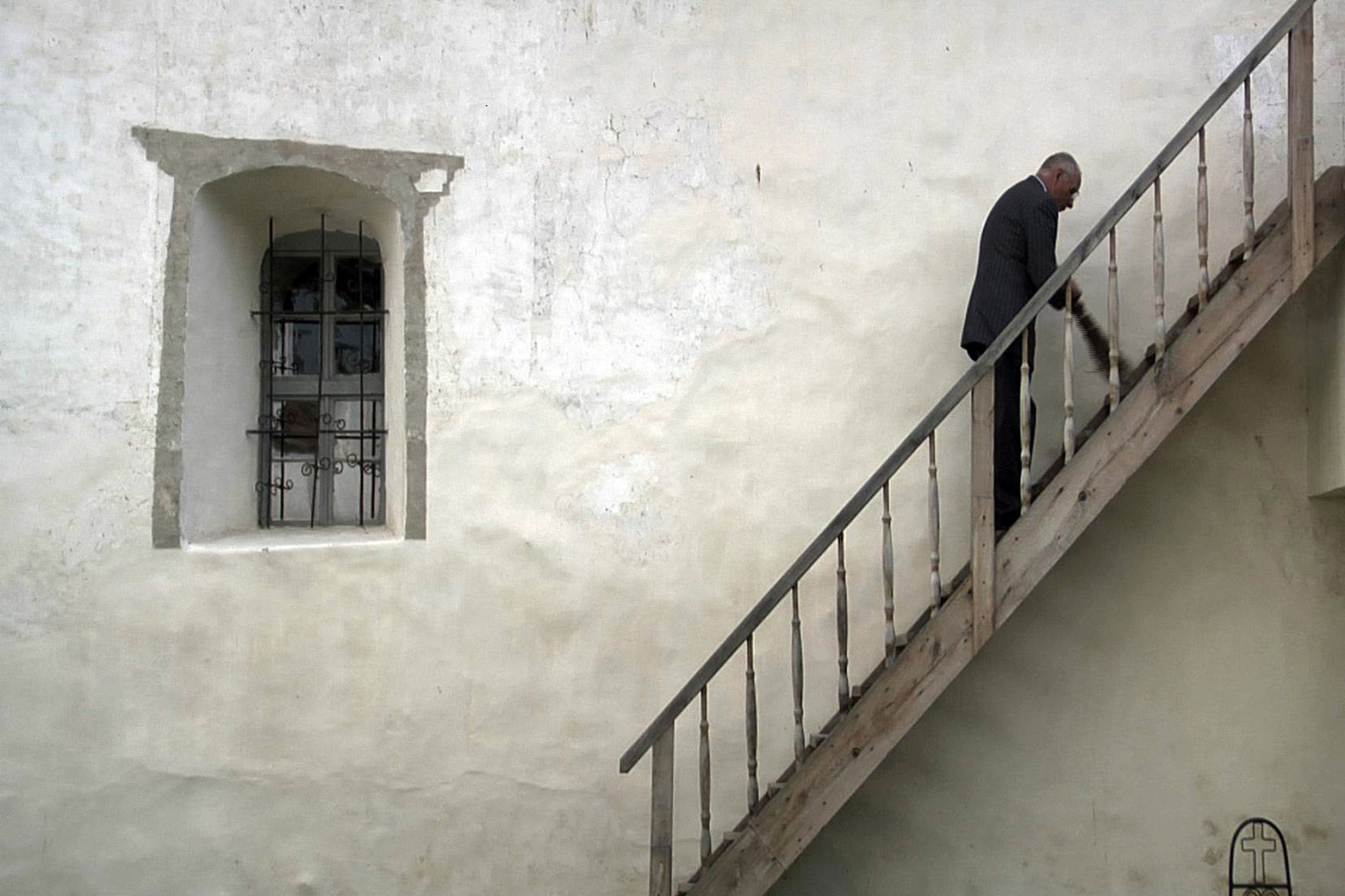 How to stop the rain, whether god exists: these are among the profound questions that occupy the minds of Alexandru and Ocsy, two schizophrenic patients in the Calugareni Neuropsychiatric Centre in Romania. Throughout the film, the two friends discuss such scientific and philosophical matters as we observe them and their fellow patients going about their strange daily routines, while the centre's nurses are kept out of view. One man happily moves pebbles from left to right, from right to left, day in day out. Another patient lying in his bed stares at colourful projections on the wall, and another spends his time diligently caring for others less physically able than himself. In precisely composed images, accompanied by light piano music and evocative atmospheric sound, the director registers the tiny details of the environment in the institution. A harsh world, far removed from normality, is transformed into the sublime.