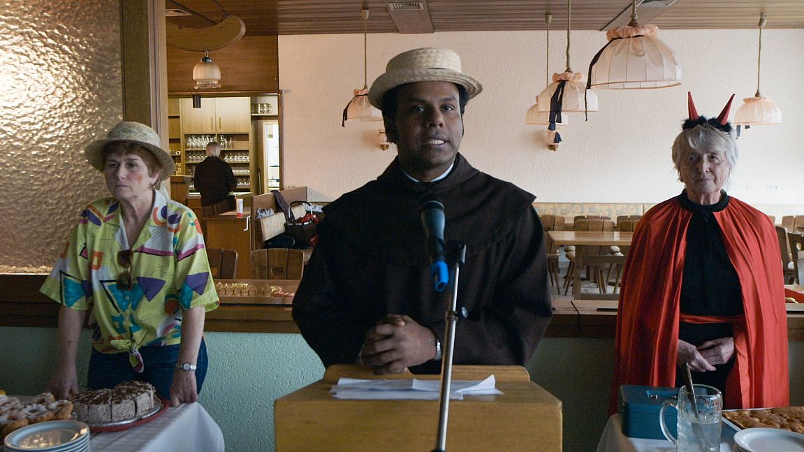 Die Gastarbeiter Gottes kommen heute aus Indien – dort ist das Christentum mit etwa 24 Millionen Anhängern die drittgrößte Religionsgemeinschaft. In Deutschland dagegen schwindet die christliche Gemeinschaft, sodass man aus Kerala, dem Kernland des indischen Katholizismus Priester holen muss, um die Gläubigen auch außerhalb der Oster- und Weihnachtsfeierlichkeiten bei Laune zu halten. Alexander Riedel begleitet indische Mönche auf ihrem Weg ins bayerische Hinterland, zeigt aber auch, wie diese in Indien zum Amt geführt werden, um dann ihre Reise ins verschneite Schwandorf anzutreten. Neben der Sprachbarriere und den kulturellen Unterschieden zeigt der Film auch die Kehrtwende des Priesteramts – zurück nach Europa. Adele Kohout
