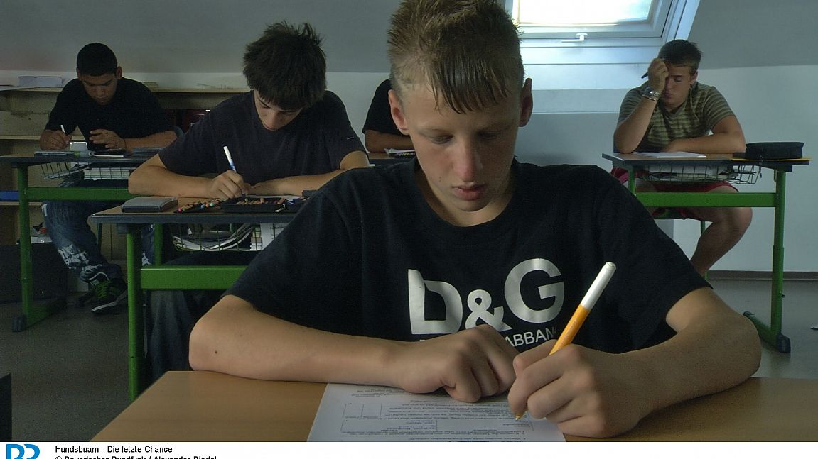 “If you tell him off, he disengages and you will not get any further with him.” School children like this are frequently failed by the regular school system. For the selected few in the district of Erding at least there is still the “GIK,” which offers special full-time intensive classes. Here two fearless educators give a handful of bad boys their very last chance to get prepared for, at best, low-paid positions in manufacturing. But it’s not so easy. Will the little rebels, after all they have been through, finally realise that a task results in a product? Is it ok for Freddy to call Ramazan a “complete idiot” because it is the same as when a black person calls someone else a “Nigger?” No: “I don’t want anyone to talk like that in here,” says Mooser, the teacher, because he knows that acceptable language means clear communication. But what happens when, in the end, even the school dog Zenzi doesn’t give a damn about treats and insults?