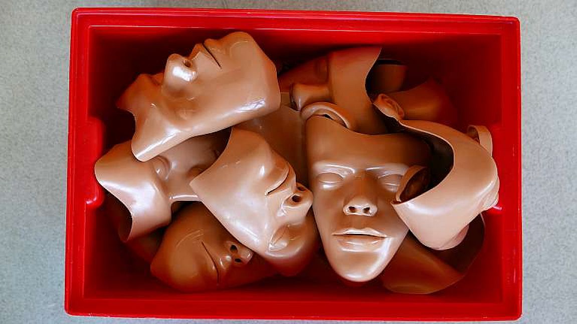 „Ich werde morgen auf eine lange Reise gehen“ – soll man sich jetzt mal vorstellen. Vögel zwitschern, der Fluss plätschert, Menschen liegen am Boden. Von der Geburt bis zum Tod braucht es Anleitung. Einfach so leben? Fehlanzeige! Fühlen, Essen, Lachen – für jeden Schritt, jeden Atemzug, jede Sekunde gibt es Kurse und Seminare. Wie wäre es mit „Schwierige Kiste“, einem Sargbaukurs? Einem Gentleman-Training oder einem Strip-Coaching? Alles in Ordnung, alles unter Kontrolle. Harun Farockis LEBEN – BRD von 1990, neu aufgelegt. Lustig. Haarsträubend. Die Wirklichkeit als Simulation vorausgelebt. Am Ende passt alles – in eine Kiste. Elena Álvarez