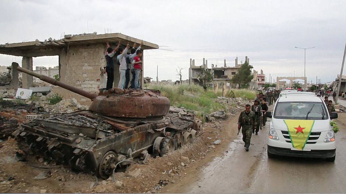 Die Front ist ein nebeliges Feld, durch das Menschen mit Bündeln laufen. Sie fliehen aus der kurdischen Stadt Kobane über die Grenze in die Türkei. Der Krieg, das sind Geräusche. Erst eine Beerdigung macht den Schmerz sichtbar. Danach: Warten. Staub. Hunde. Schüsse und kurze Blitze, Explosionen. Junge Frauen schieben Nachtwache, scherzen mit einem Mann. Es geht um mehr, als um IS und Assad: die Kurden – Männer und Frauen – kämpfen um Rodschawa, das autonome Westkurdistan. Sie kehren zurück nach Kobane, eine Stadt in Schutt und Asche. Spuren der Erinnerung, kaum noch erkennbar. Musikinstrumente im Staub. Ein poetischer Film, der Mut zur Hoffnung macht. Elena Álvarez