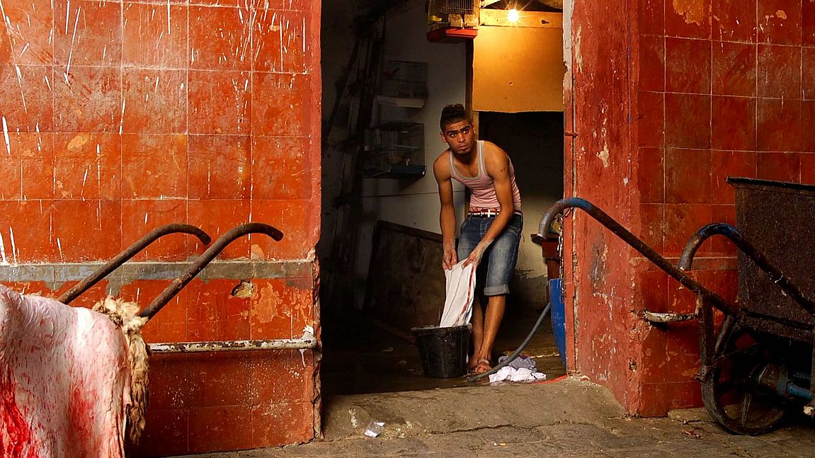Probably the most beautiful film that has ever been filmed in an abbatoir. Francis Bacon meets Caravaggio. Algiers: the world of young and old butchers in their place of work during the football World Cup. A film about love, women and the question of a simple life.