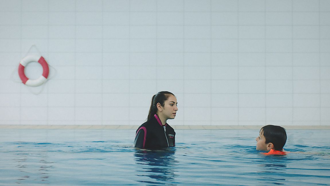 The young Yazidi Hanan has conquered her fear and learned to swim. She does not want her traumatic memories of fleeing across the Mediterranean Sea to take away her lust for life. Today she teaches children how best to move through the water. Even her little brother Sidar is now going to do his seahorse badge. Maya Reichert