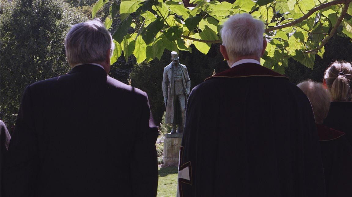 Was haben ein Haus, der Tod, Sigmund Freud und die Gestapo gemeinsam? Zeitweise dieselbe Adresse. Genauer gesagt die Anschrift “Schottenring Nr. 7”, gelegen an Wiens Prachtboulevard, der “Ringstraße” im Herzen der Stadt. Hier verbrannten 1881 fast 400 Theaterbesucher im schauerlichen Ringtheaterinferno, hier stürzten sich zahlreiche Psychoanalyse-Patientinnen in den Tod. Auf den Knochen jener Toten wurde später die Wiener Landespolizeidirektion errichtet. Maya McKechneay durchforstet in ihrem gleichermaßen essayistischen wie experimentellen Dokumentarfilmdebüt raffiniert die Topografie eines besonders verderblichen Ortes: Ein sehr zeitgemäßer Horrorfilm – ohne eine einzige Leinwandleiche. Simon Hauck