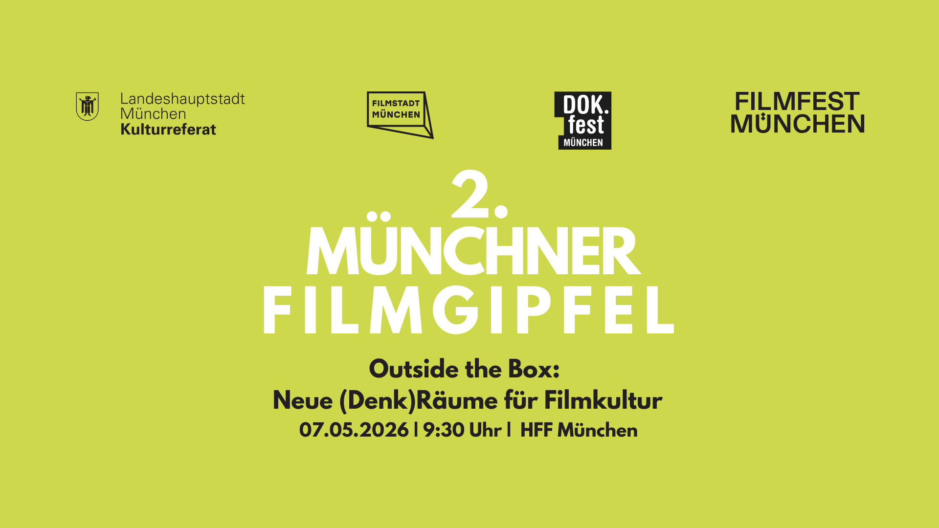 Der 2. Münchner Filmgipfel findet am Donnerstag, 7. Mai 2026 um 9.30 Uhr in der HFF München im Rahmen des DOK.fest München statt und wird von Kulturreferent Marek Wiechers eröffnet.