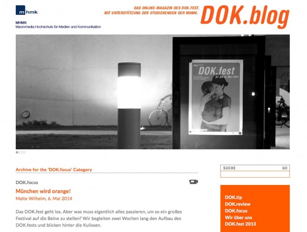 Der DOK.blog hat das DOK.fest 2014 mit aktuellen Infos und Hintergründen rund um das Festival begleitet. Mit der Unterstützung von Studierenden des Studiengangs Film und Fernsehen der MHMK, Macromedia Hochschule für Medien und Kommunikation. blog.dokfest.de